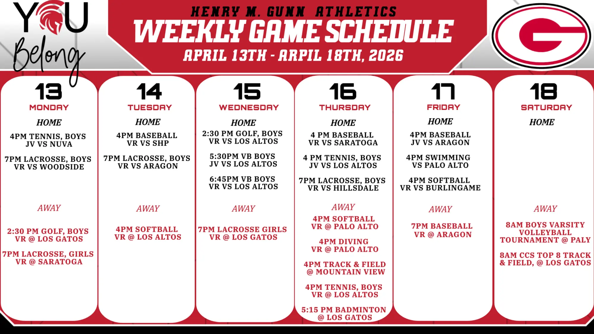 Stay up to date on all things Gunn Cheer by following @gunncheer on Instagram. Attend our last two open gyms (4/13 4:30-7:30pm & 4/22 4:00pm-7:00pm) to learn more about our program! Please reach out to Coach Arianna at gunntitanscheerleading@