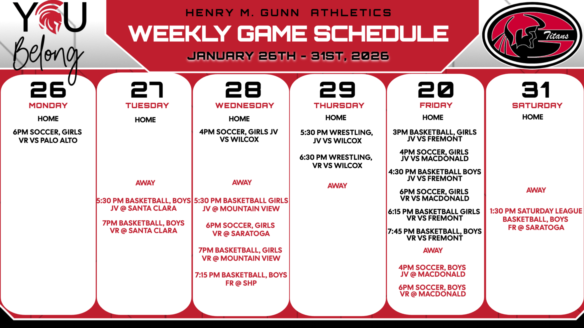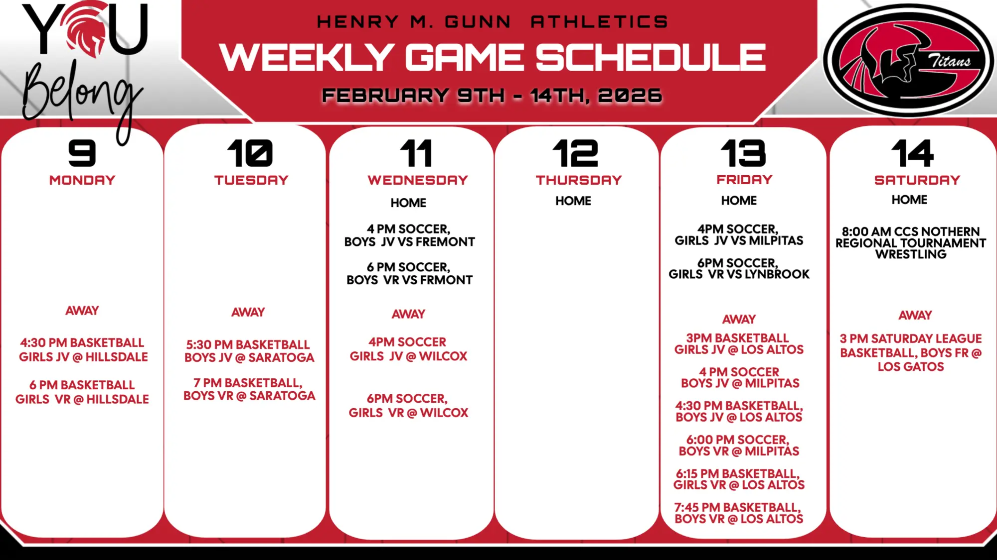 Tryouts for all Spring sports begin the week of February 2, 2026.