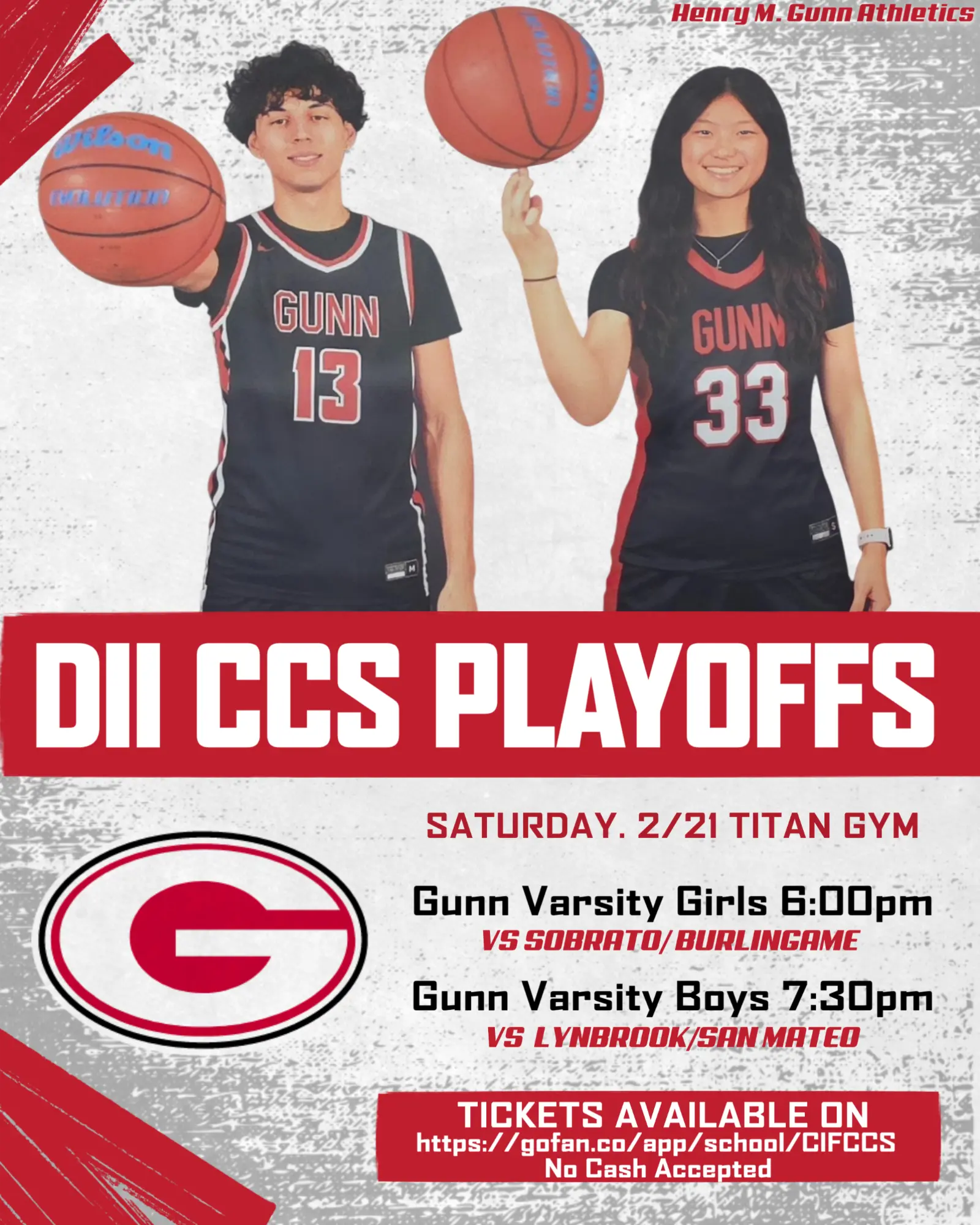 GUNN BASKETBALL SENIOR NIGHT!! Tuesday, February 17 Titan Gym Join us as we celebrate our seniors and their commitment to Gunn Basketball! Girls vs. Monta Vista – 5:30 PM Boys vs. Lynbrook – 7:00 PM Free Entry for all Gunn Students!...